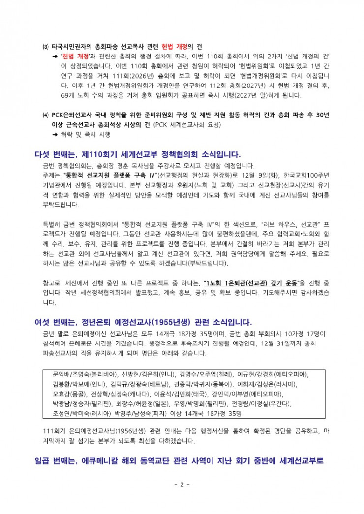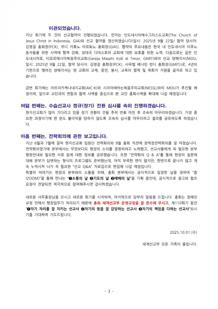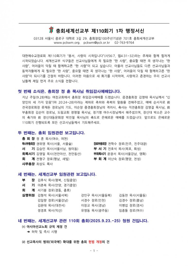 [행정] 세계선교부 110-1차 행정서신(2025.10.01.)