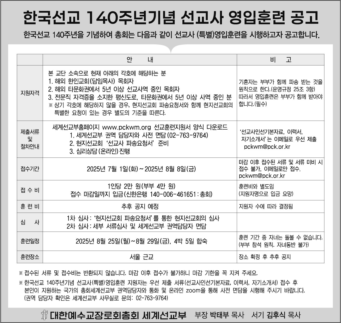세계선교부 선교훈련 총회파송선교사 선교훈련