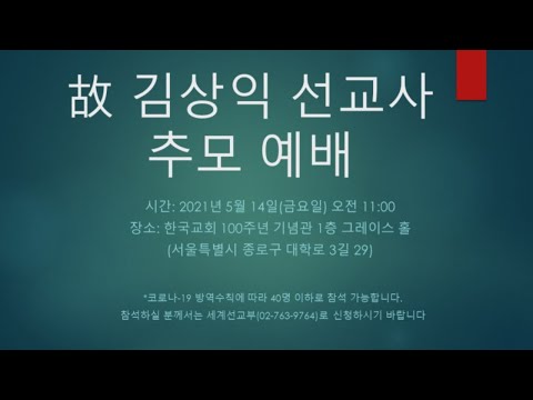 故 김상익 선교사(온두라스) 추모 예배 | LIVE STREAM