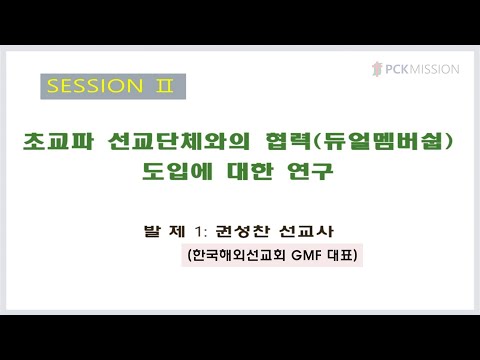 초교파 선교단체와의 협력 (듀얼멤버십) 제도 도입에 관한 연구 | 발제: 권성찬 선교사 (한국해외선교회 GMF대표) - 제106회기 PCK 총회 세계선교부 정책협의회