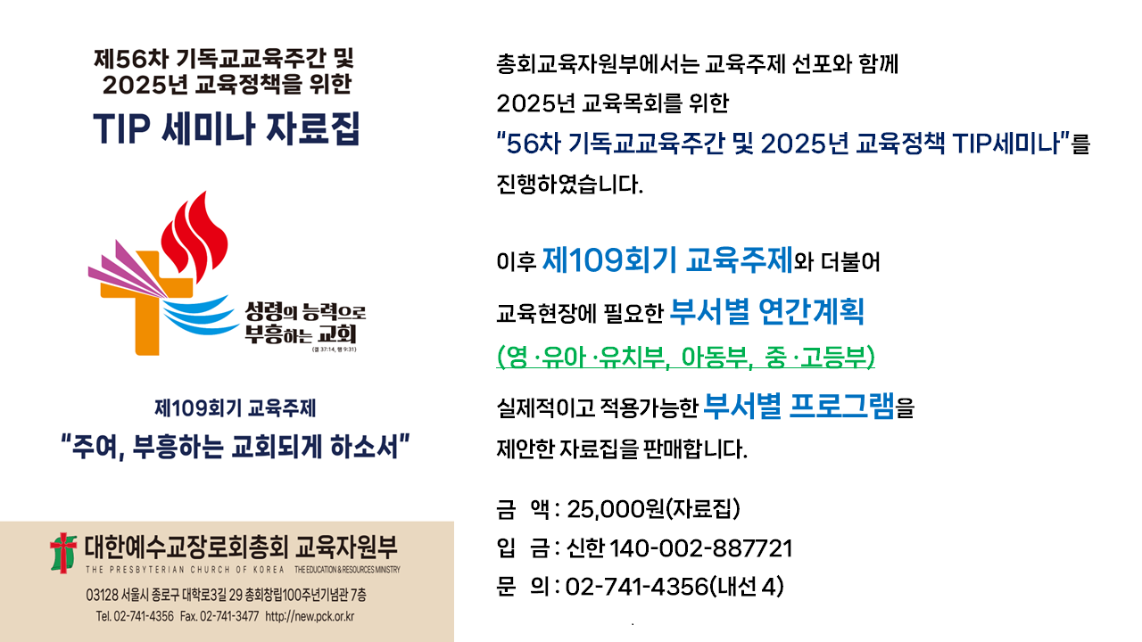 자세한 내용과 특별 프로그램은 TIP세미나 자료집에 수록되어 있으며, 총회교육훈련처로 문의바랍니다. * 안내사항