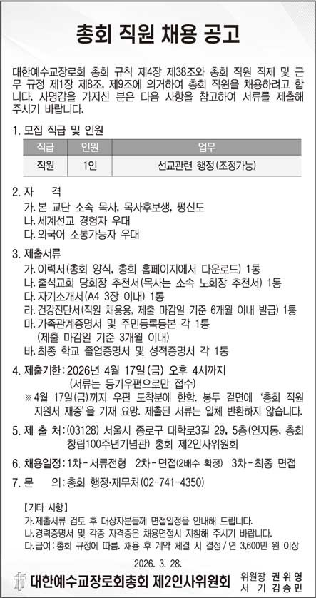 총회 직원 채용 공고