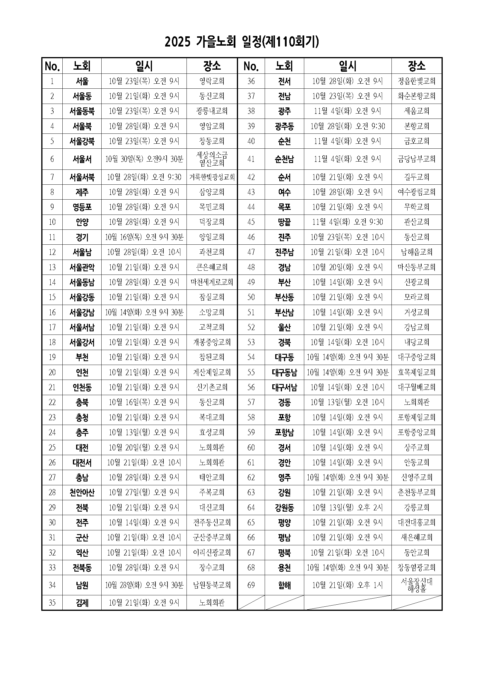 2025 가을노회 일정(제110회기)