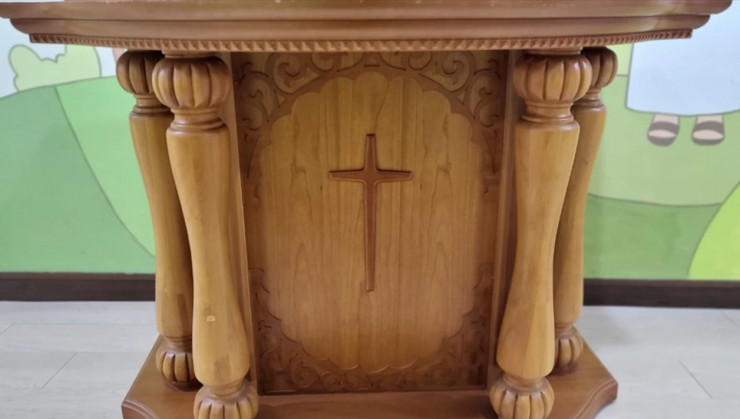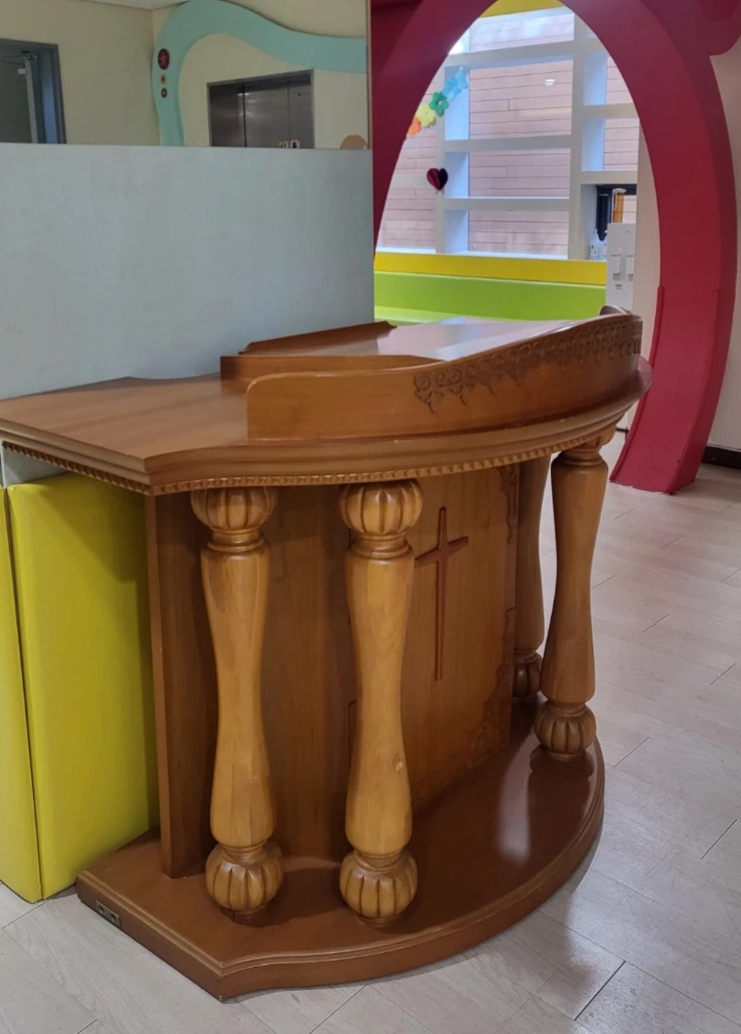 (단 앞에 절기 때 강대상 보를 압정으로 고정한 흔적이 있습니다)