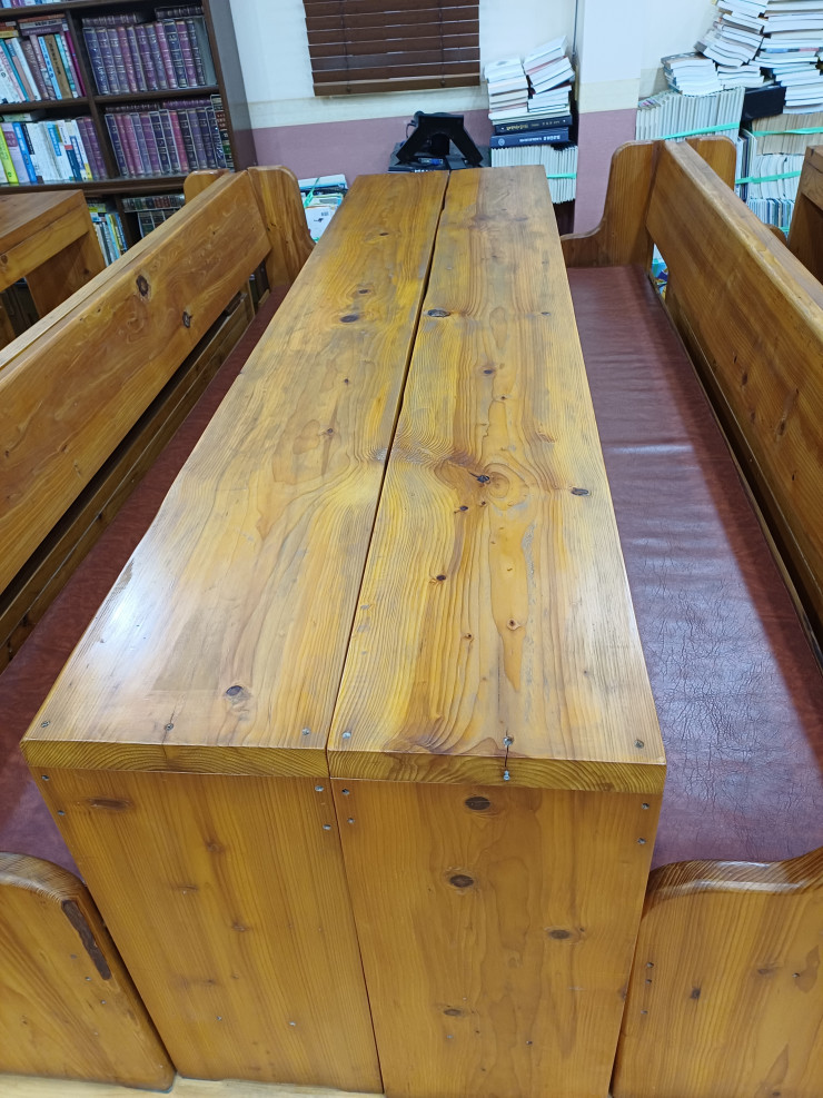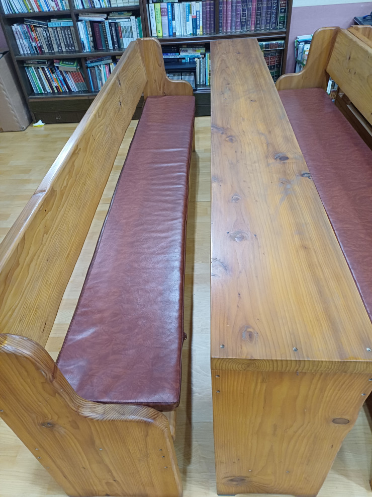 장의자는 주문제작한 의자로 성경책을 놓는 곳을 넓게 만들었습니다. 제작한 지는 오래 되었지만 튼튼합니다. 자료 사진을 올려 놓습니다.