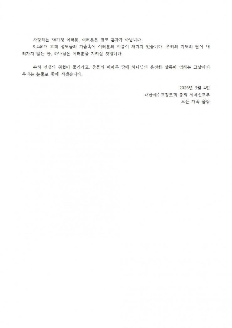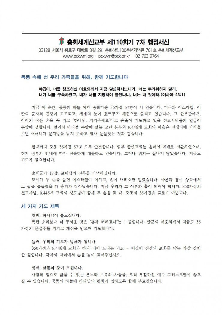 [행정] 세계선교부 110-7차 행정서신(2026.03.04.)