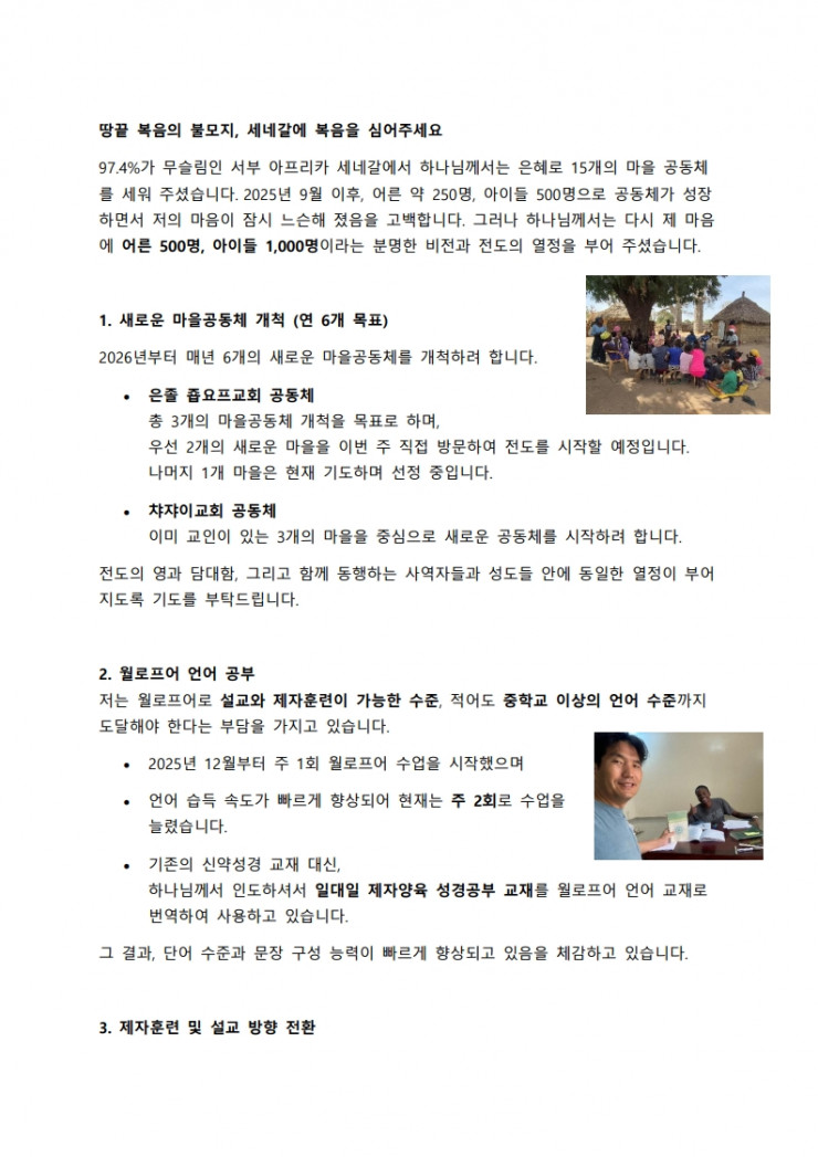 [아프리카] [세네갈] 2026년 1월 선교편지