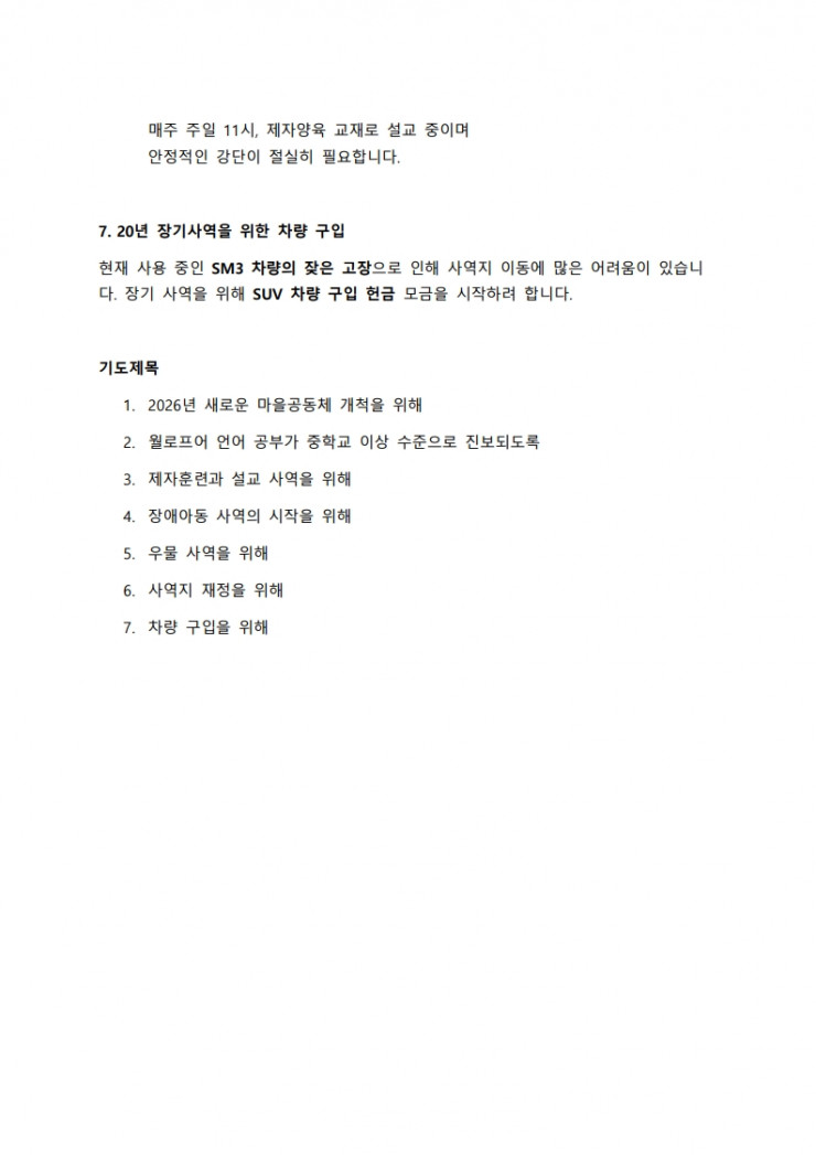세계선교부의 선교편지입니다.