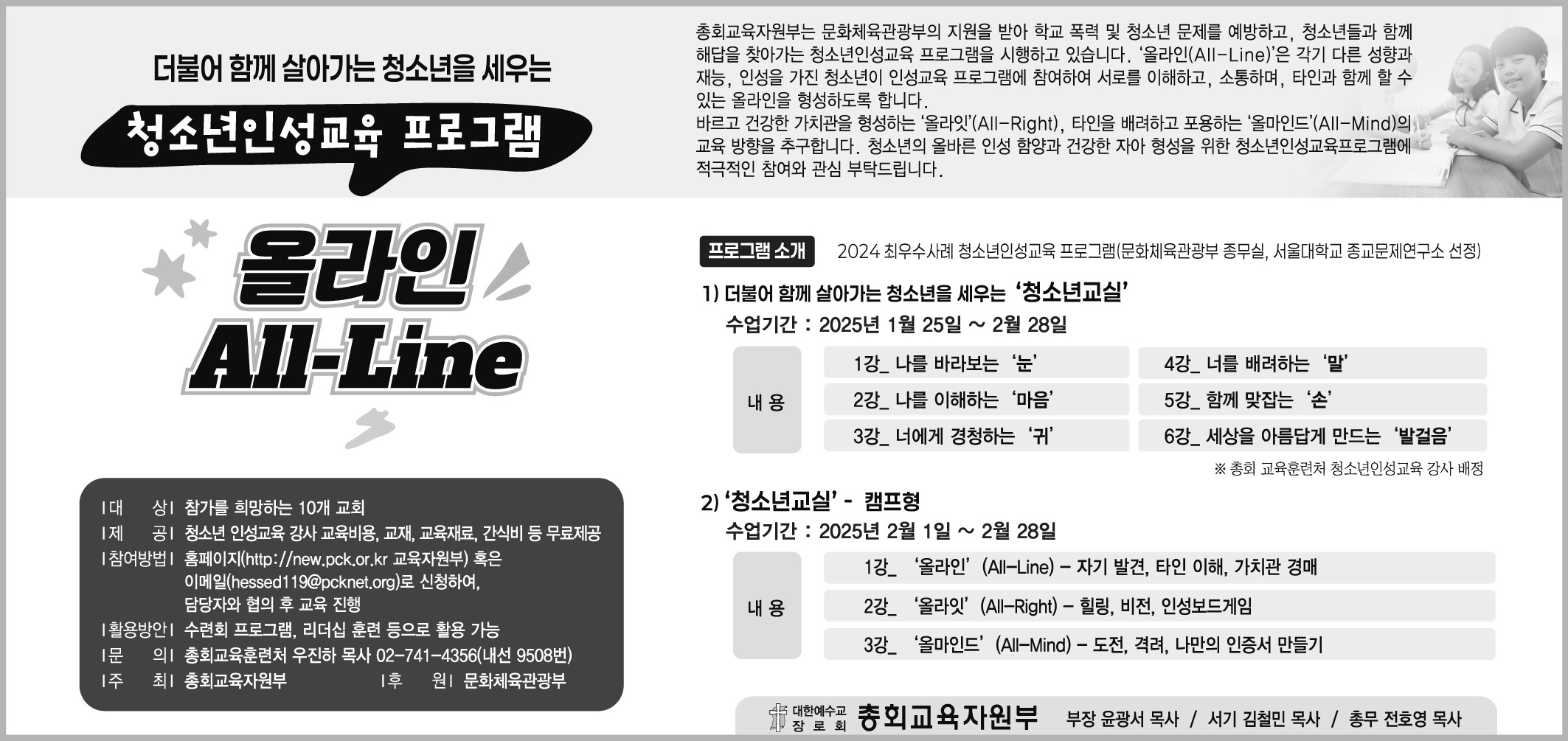 | 장소 | 지역교회, 노회연합회, 온라인 |