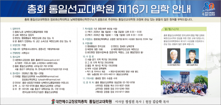 총회통일선교대학원 2026년 제16기 입학안내